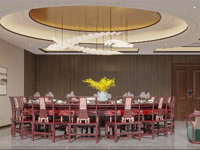 專業(yè)的深圳裝修設(shè)計(jì)公司認(rèn)為,新中式的室內(nèi)裝修設(shè)計(jì)風(fēng)格顯得待客餐廳的氛圍嫻雅大氣,天花經(jīng)過邊緣雕飾設(shè)計(jì),增強(qiáng)了視覺延伸感,視野上更開闊寬敞。波浪造型的燈具為頂層空間補(bǔ)充了別致的設(shè)計(jì)感,與明式圓桌的復(fù)古感共同碰撞出尊貴的高檔次質(zhì)感。