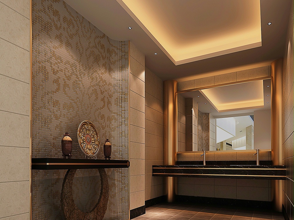 本案洗手間裝修設(shè)計(jì)案例中,色彩與燈飾的搭配,新中式設(shè)計(jì)理念運(yùn)用與空間中,富具極有中式文化和歷史韻味,注入現(xiàn)代中式裝修元素,風(fēng)格以莊重,典雅為主,暖黃的燈光映照下富麗堂皇。透過典雅的線條和尊貴的色彩,讓材質(zhì)本身的自然紋理和顏色光澤也得以呈現(xiàn)出很好的效果,體會(huì)別樣視覺的盛宴。