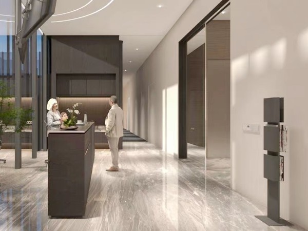 前臺以現(xiàn)代簡約和鏡像的設(shè)計原理,沒有過多的裝飾,創(chuàng)建了開敞大氣的迎賓前臺大廳,更能彰顯出金融公司高端、簡潔、大氣的特質(zhì)。