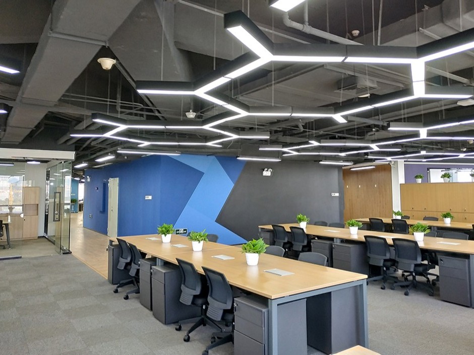 該深圳辦公室裝修項(xiàng)目主要是使用者作為科技類產(chǎn)品的研發(fā)空間,要求足夠?qū)挸?,空間的開放度與靈活度自由變換,辦公桌實(shí)現(xiàn)可隨意拼裝組合。文豐設(shè)計(jì)師在設(shè)計(jì)上立足于“靈活共享”的主線,以設(shè)計(jì)、現(xiàn)代、開放和連通為主題,著眼于科技發(fā)展的今天和未來,創(chuàng)造出一個(gè)極富時(shí)代感和超前性的辦公空間。深圳辦公室裝修