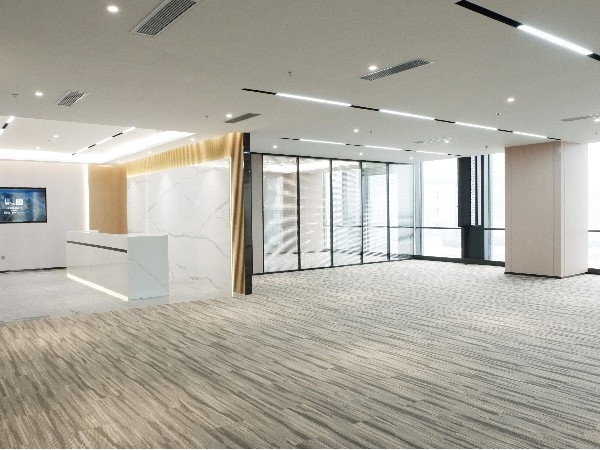 整個(gè)辦公區(qū)使用嵌入式燈帶不僅可以提供基礎(chǔ)照明,還能在視覺上提升空間的高度,消除壓抑感。